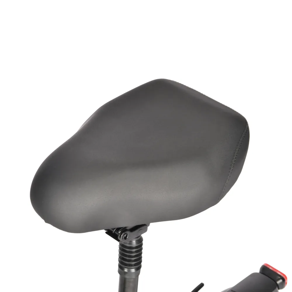 Большие колеса 11 дюймов изготовлены из резины и имеют надувную конструкцию. Широкий протектор обеспечивает лучшее сцепление с дорожным полотном. Амортизация доведена до совершенства и позволяет не замечать ямы и кочки. Широкое сидение рассчитано на длительные поездки. Яркий передний свет и оригинальные габаритные огни делают поездки безопасными. Тормоза дисковые имеют независимы друг от друга на каждом колесе и хорошо реагируют на команды. Современный боровой компьютер отображает основные параметры электросамоката, такие как скорость и уровень заряда.