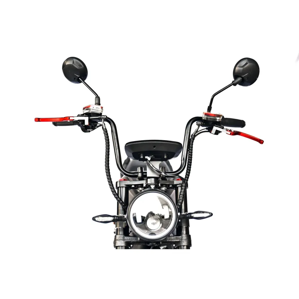 Двухместный байк оснащен яркой светодиодной фарой, задним стоп-фонарем и поворотниками. Наличие зеркал заднего вида и дисплея с параметрами вольтажа увеличивают степень безопасности тс. Из других дополнительных элементов производитель выделяет держатель для телефона, клаксон и светоотражатели. В совокупности техника комфортная и безопасная. Для заказа мощного байка сейчас предлагаем сделать телефонный звонок менеджеру интернет-магазина.