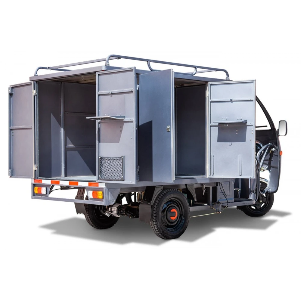 Усиленная конструкция рамы обеспечивает максимальную грузоподъемность до 500 кг. Оригинальность деталей и высокое качество сборки являются приоритетными для производителя. Модель оснащена мощным двигателем 1000 Вт. Емкий аккумулятор обеспечивает преодоление расстояния на одном заряде до 60 км. Улучшенные технические показатели позволяют развивать максимальную скорость до 25 км/час. Возможность размещения дополнительного аккумулятора делает технику универсальной и увеличивает автономность использования. Закрытая кабина транспортного средства является одним из существенных достоинств.