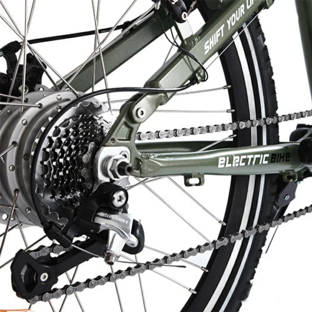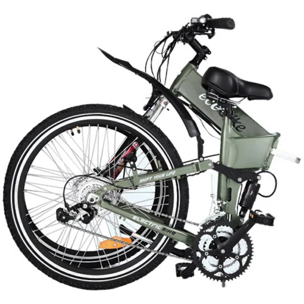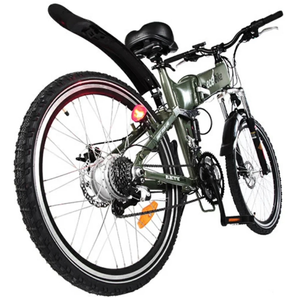 Электровелосипед ECOBIKE Hummer, зеленого цвета - складной двухподвес рассчитан на быструю езду 35 км/час по любому типу дорожного полотна и рельефа. Рама выполнена из облегченного алюминия и свободно выдерживает нагрузку до 120 кг. Мощный дизайн и смелое стильное оформление придется по душе настоящим технарям и любителям острых ощущений и драйва. Райдер свободно преодолеет до 35 км пути на одном заряде (за 5 часов), в дальнейшем можно воспользоваться режимом педалирования. Педали складного типа вращаются легко и без дискомфорта. Наш интернет-магазин предлагает регулярные скидки постоянным покупателям и накопительную карту клиента.