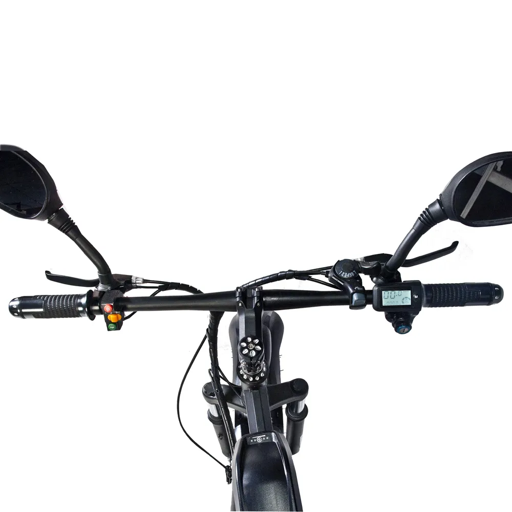 26-дюймовые колеса отлично сцепляются с асфальтовым покрытием и грунтом, устойчивые, гарантируют отличный накат. Мягкое регулируемое по высоте седло снижает нагрузку на позвоночник. Информативный жк-дисплей обещает безопасное длительное путешествие. Предоставление информации о скорости, дальности пути и заряде батареи исключают форс-мажорные ситуации.