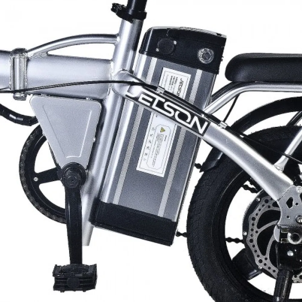 Мощность электромотора 350 Вт и емкости батареи – 12 А*ч достаточно для развития приличной скорости – до 45 км/час и преодоления расстояния до 42 км пути. Байк оснащен механическими тормозами и 14-дюймовыми накатистыми колесами. Батарея размещена за подседельной частью в специальном блоке. Основная конструкция рамы – заниженная, изготовлена из облегченного алюминия, дает возможность эксплуатации тс прекрасной половиной пола. Анатомическое переднее и пассажирское седло снижает нагрузку на позвоночник, исключает ощущение усталости.