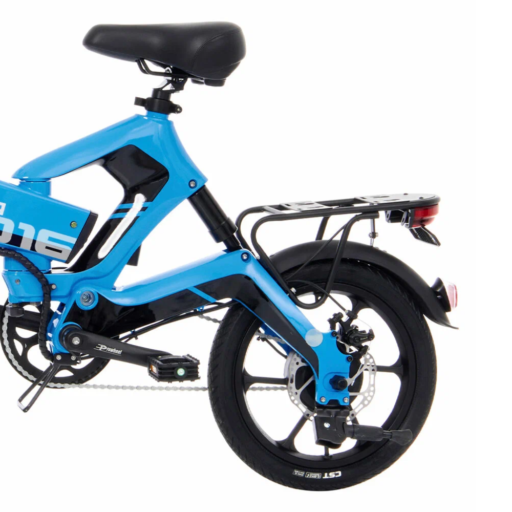 16-дюймовые колеса обеспечивают отличную устойчивость, а мощность 500 Вт двигателя и задний привод делают поездки более плавными и уверенными. Благодаря емкости аккумулятора кейса 11 Ач и напряжению 48 В, вы можете наслаждаться длительными поездками без беспокойства о заряде.