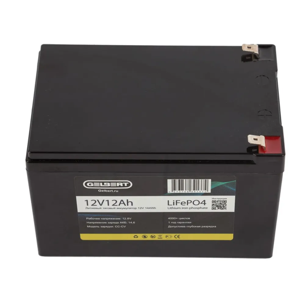 Литиевый тяговый аккумулятор Gelbert LiFePO4 (12V/12Ah/12A/144Wh) [6-DZF-12, 6-DZM-12]